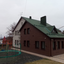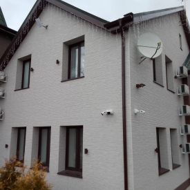 Составлен дизайн- проект, подобраны материалы. и организованна их доставка.. Монтажные работы по фасаду и водосточной системе..